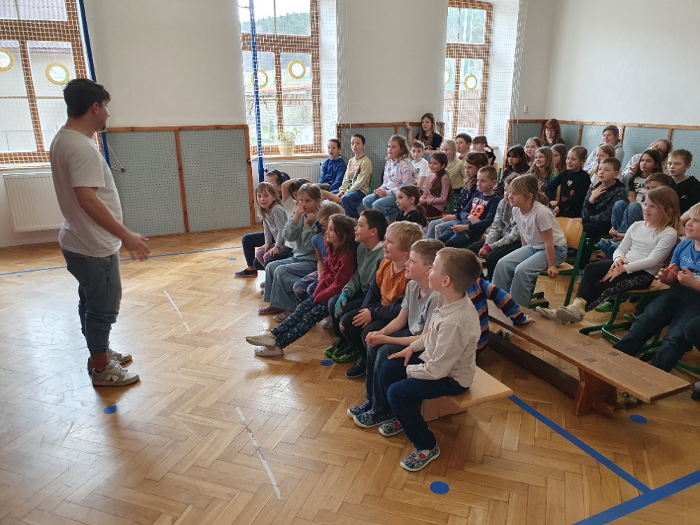 Divadélko pro školy Hradec Králové nám přivezlo představení Z devatera pohádek podle Karla Čapka.